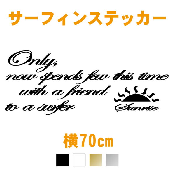 この商品は 【横70m】サーフィン用サンライズ筆記体 カッティングステッカー カラー7色 車/サーフィン/サーファー/日の出/友達/防水/リアサイドガラス/リアガラス/ウィンドサーフィン/ウェイクボード/マリンスポーツ/ステッカー/かっこいい/かわいい/おしゃれ/メール便可 ポイント 英語の意味は『サーファーへ、今しかないこの時間を友と共に過ごす』です。
