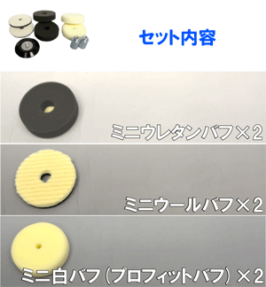 小型バフ接続 ポリッシャーキット(ミニポリッシングキット)ポリッシャーバフ/スポンジバフ/ウールバフ/ウレタンバフ/小型ウールバフ/小型バフ/小型ウレタンバフ/小型ポリッシャーバフ/小型スポンジバフ/ヘッドライト黄ばみ バフ/ボディー磨きバフ/バフ