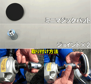 2、ミニバフをマジックテープ部分に装着したミニマジックパットをジョイントに装着すれば完成です。