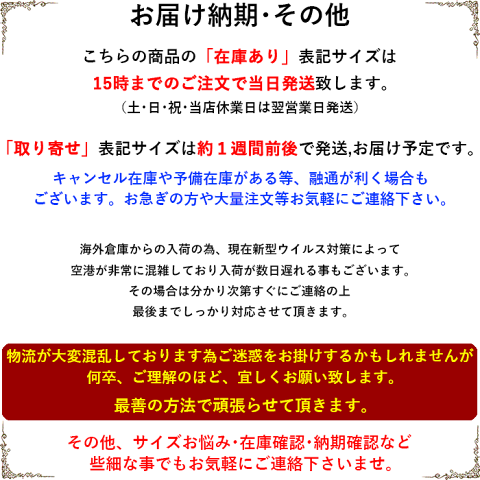 納期 在庫品は平日15時までのご注文で即日発送。