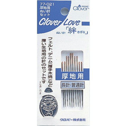 4901316770211 ls@CLV-1415CL-厚地用ぬい針セット クロバー 手芸 裁縫 ソーイング用品 洋裁 ハンドクラフト77021表面がニッケルメッキされているので、サビにくい針です。