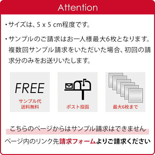 [サンプル請求に関してのご注意]●サイズは、5 x 5 cm程度です。